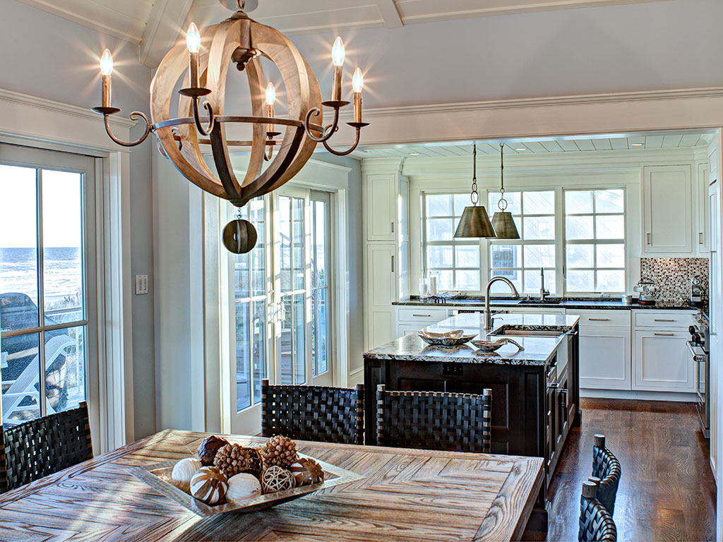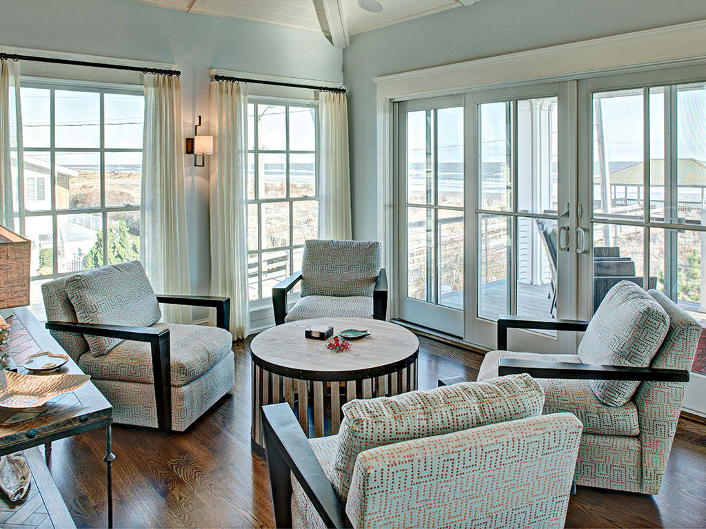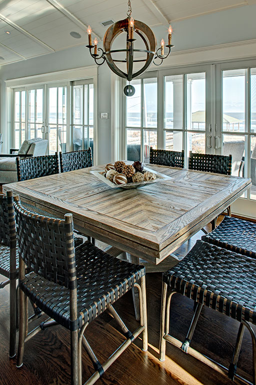 “To create the ultimate seaside house, everything about the design takes its surroundings into consideration. The interiors by Rachel Kapner, of Creative Wallcoverings & Interiors, are made up of spaces with soothing colors inspired by the ocean and sky. Durable fabrics and materials that can hold up to sand and water were used throughout, perfect for a family with three teenage sons.”